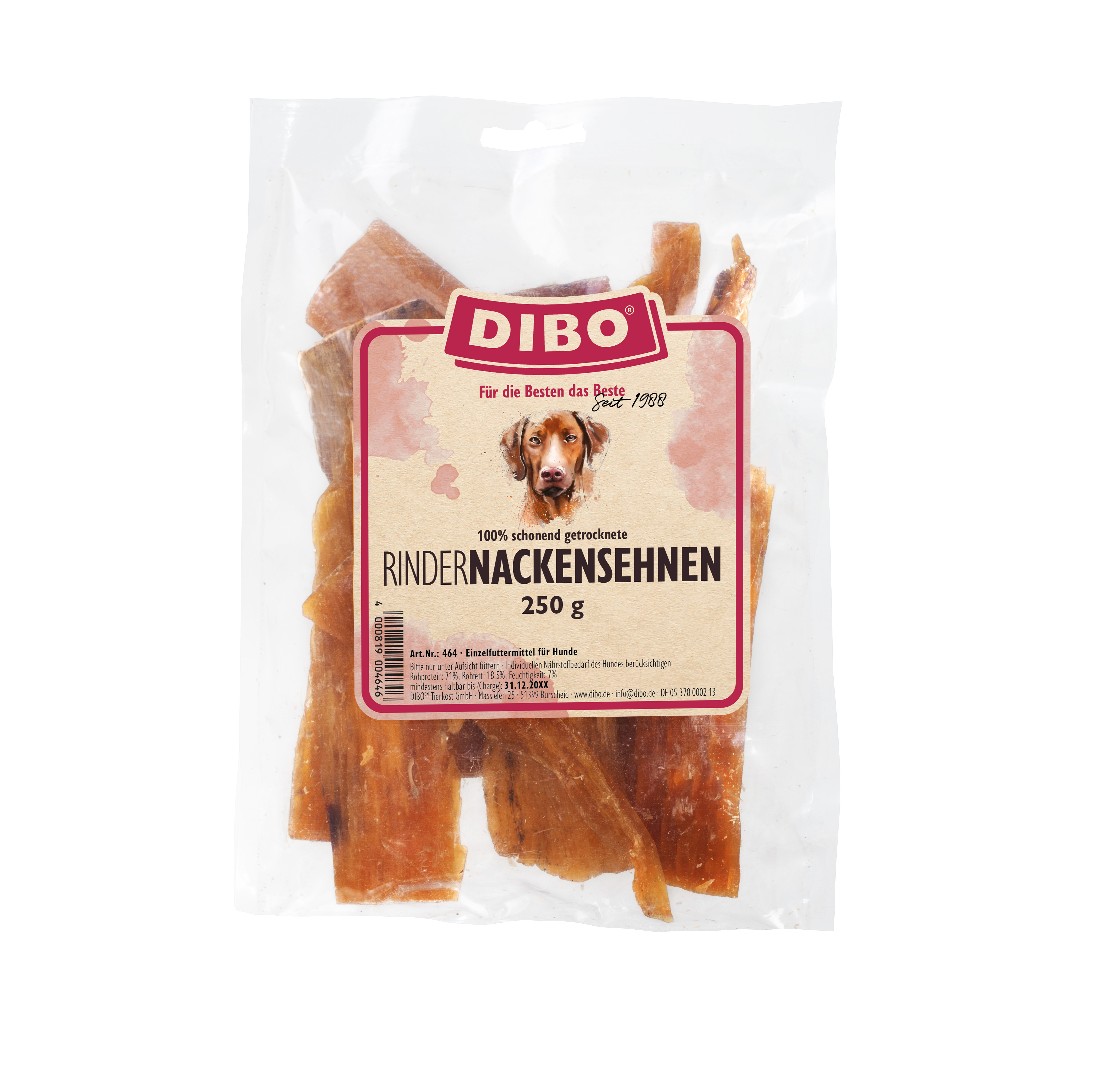 Die Rinder-Nackensehnen von DIBO stillen das ureigene Bedürfnis Ihres Hundes nach Kauen und Nagen. Durch die schonende Trocknung bleibt die faserige Beschaffenheit der Rinder-Nackensehnen von DIBO besonders lang erhalten und sorgen für einen langandauernden Genuss.